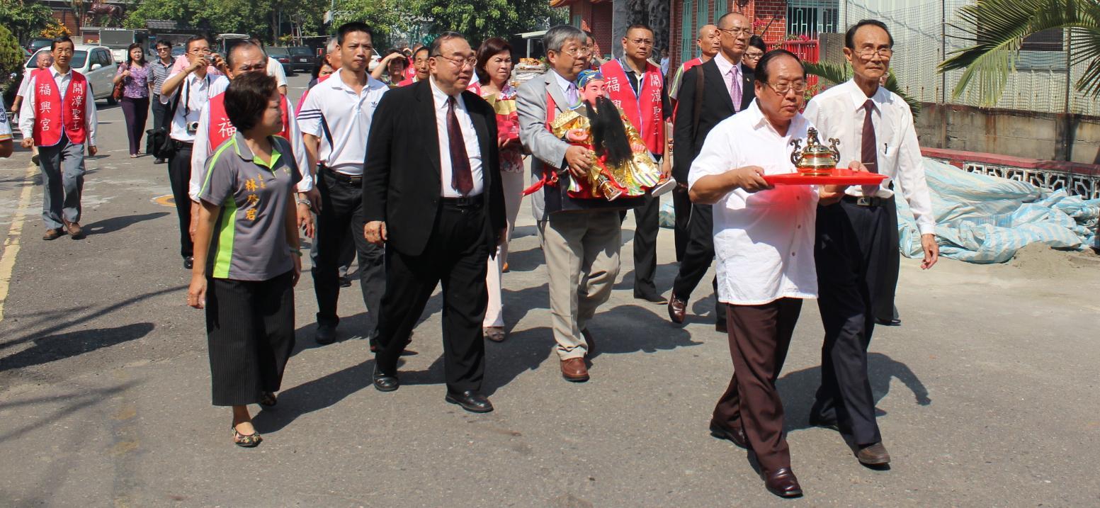 1104僑光社/斗六「開漳聖王回老家」的活動11月4日在雲林縣斗六市福興宮進行聖王新神像的出行儀式,由中華僑聯總會簡漢生理事長主持,與斗六市謝淑亞市長、中華僑聯總會鄭致毅秘書長、廖俊傑副秘書長、世界陳氏宗親總會陳盛根理事長及雲林分會陳建誠理事長等多位,共同恭迎神像回到開漳聖王陳元光的故鄉河南省固始縣(見圖)。