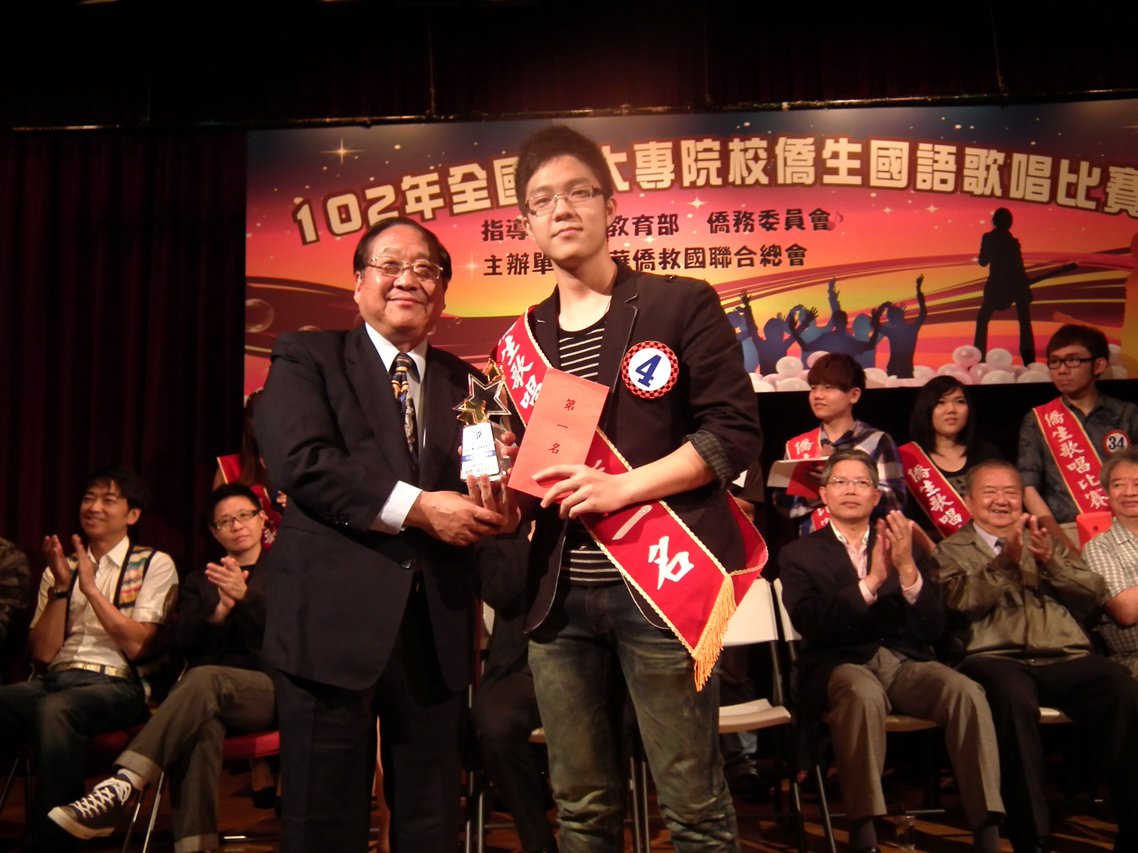 SING僑光社/台北 由華僑救國聯合總會主辦102年全國各大專院校僑生國語歌唱比賽, 5月25日中午12時,在中國廣播公司音樂廳舉行,台藝大陳章健以一首「沒離開過」奪冠。