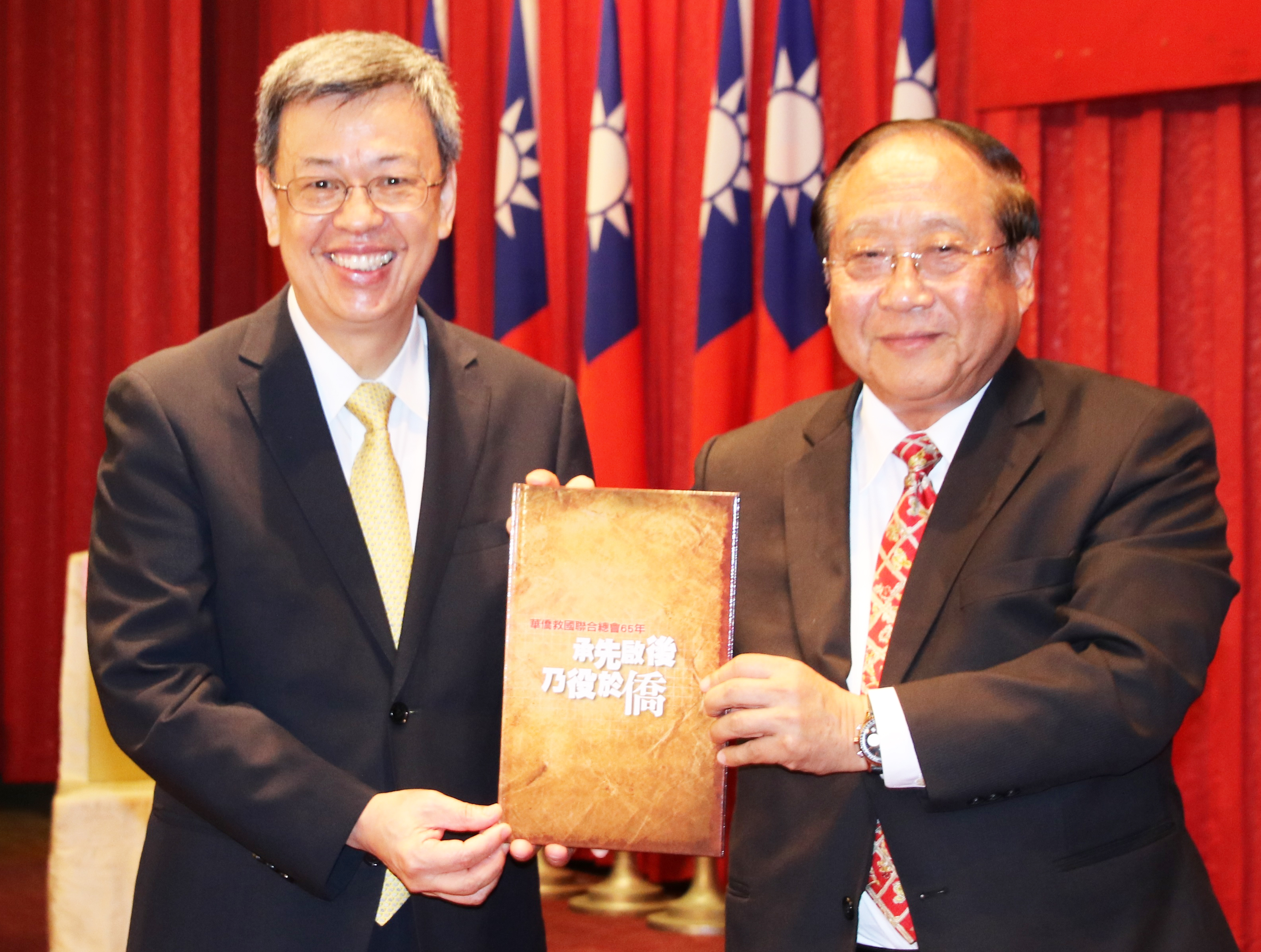 鄭理事長並以「僑聯65年特刊」一份,贈送三位貴賓紀念。
