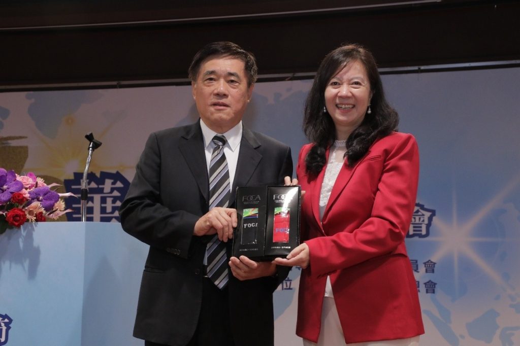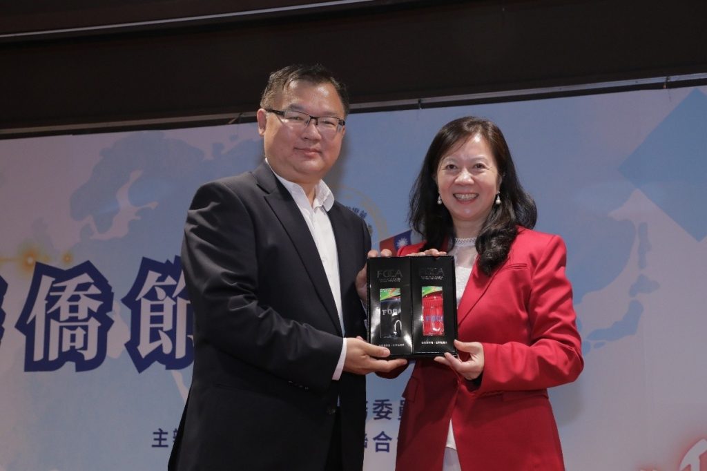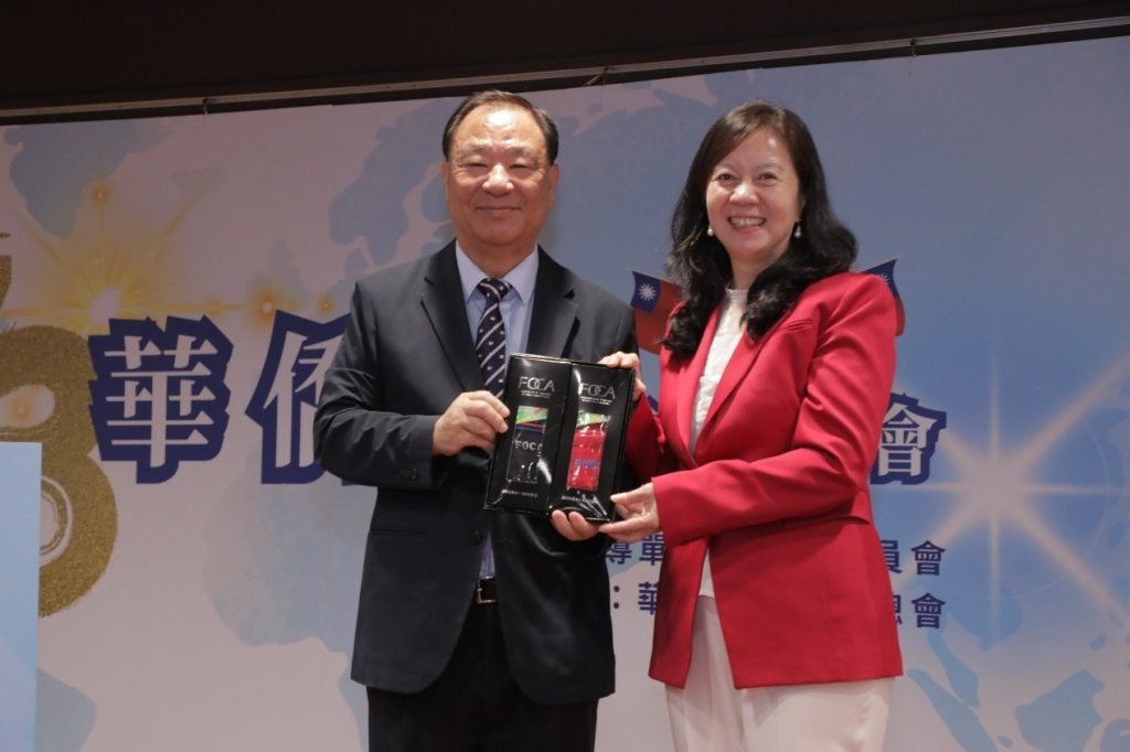 貴賓們均應邀致詞,大會主席,僑聯總會童惠珍理事長並贈送紀念品給貴賓們。